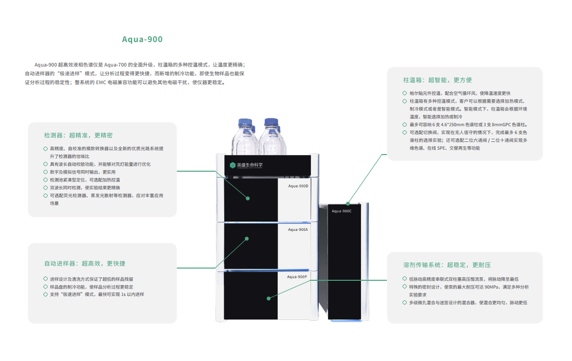 Aqua-900超高液相色谱仪是Aqua-700的全面升级,柱温箱的多种控温模式,让温度更精准;自动进样器的“极速进样”模式,让分析过程变得更加快捷,而新增的制冷功能,即使生物样品也能保证分析过程的稳定性;整系统...